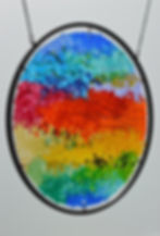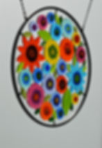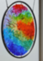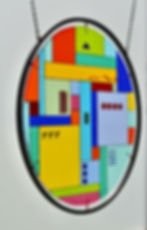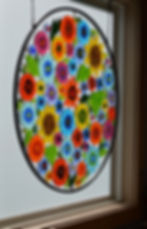27" Round glass panel. Designed to hang in a window or open space. (Sold)